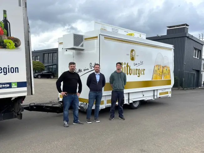 WeiterlesenFür Achim Krist aus Lorscheid in Rheinland-Pfalz ist ab sofort ein neuer Partycooler „Leon“ im Einsatz Ausgestattet ist der kompakte Ausschankwagen mit einer 2-leitigen Bieranlage, einem groß dimensioniertem Kühlraum, einem gekühltem Rollenauszug und einer High-End metallic Lackierung Der Wagen kommt im auffälligen Branding der Bitburger Brauerei daher Achim Trier bietet als Bar 4 U Services rund um...