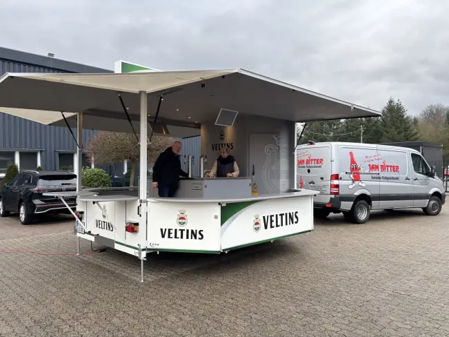 WeiterlesenAbgeholt und einsatzbereit: Ein neuer Ausschankwagen im markanten Look der Veltins Brauerei aus der Fertigung von CTR Fahrzeuge wurde von seinem Besitzer Getränkefachgroßhandel Jan Bitter GmbH aus Bad-Bentheim übernommen Mit seiner 4-leitigen Zapfanlage sorgt der GA 4000-8 EK Shirin für einen zügigen Ausschank – ideal für Feste, Feiern und Events jeder Art Der Getränkefachgroßhandel Bitter wird heute...